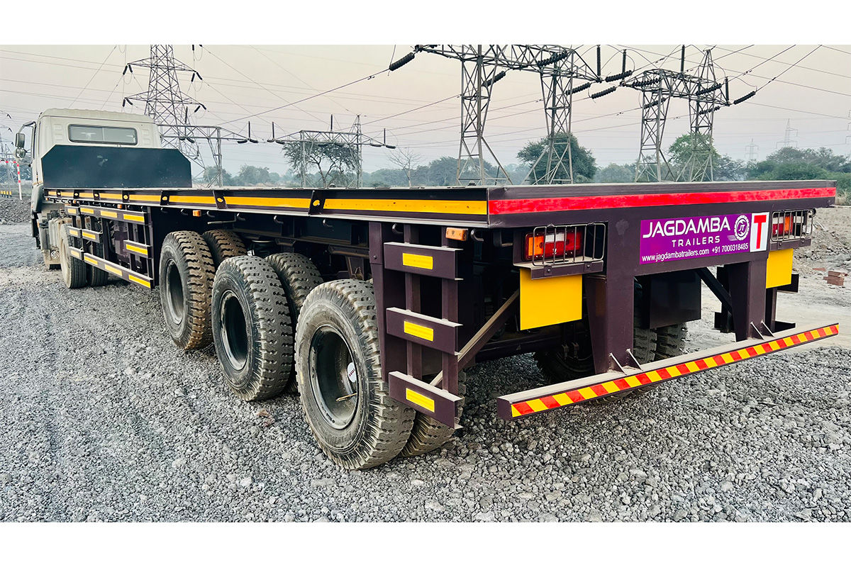 Discover unparalleled strength and versatility with Jagdamba Trailers' Flat Bed Trailers. Engineered with precision, featuring ISMC members, 12 heavy-duty twist locks for container stability, and a rigid underbody structure, these trailers are designed to handle your heavy-duty usage with ease. Compliant with safety standards, they offer a range from 20' to 40', customizable to suit your specific needs.